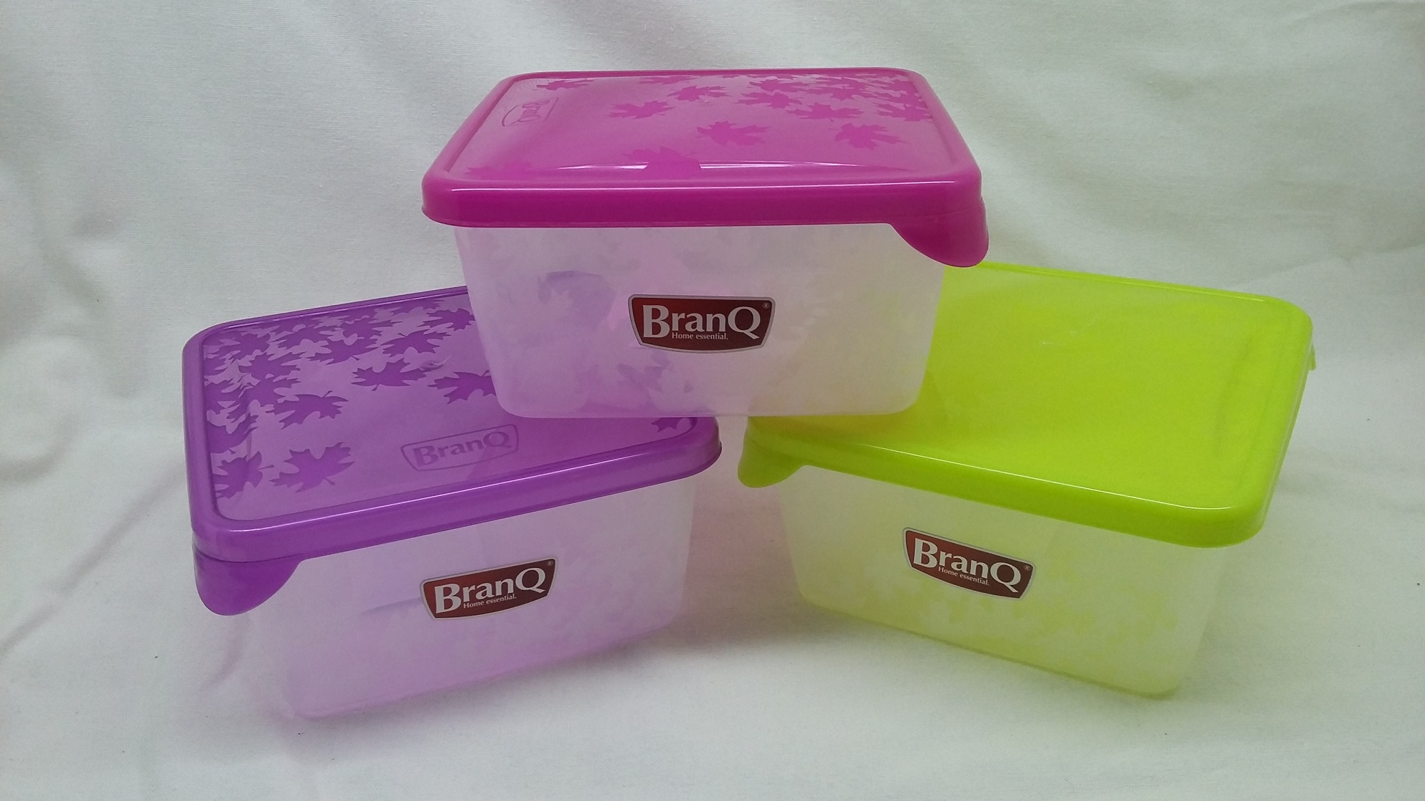 Potravinové dózy Rukkola 3ks 2x0,45L+1x0,75L Rozměry: 2x 115x115x58mm, 1x 115x115x84mm Barvy: fialová, zelená Svěží moderní design