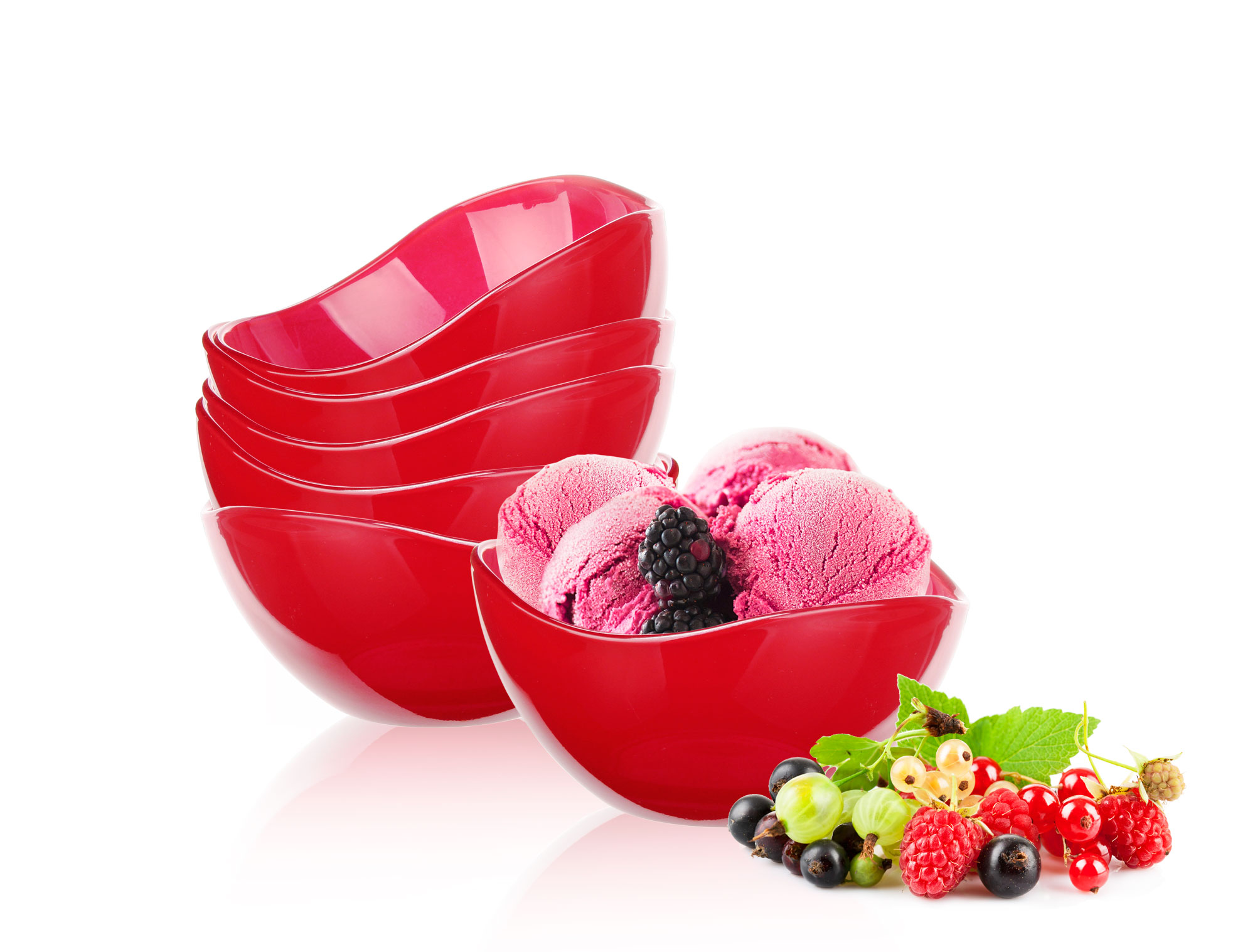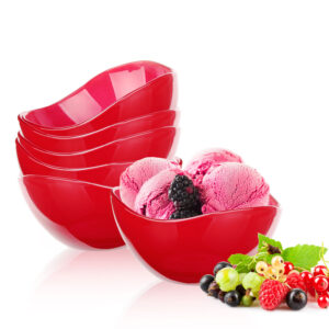 Skleněná miska s červeným dekorem. Je vhodná na kompoty, saláty, oříšky atd. Misky jsou skladné, stohovatelné, stanou se ozdobou Vašeho stolu. Průměr 12 cm, výška 6 cm.