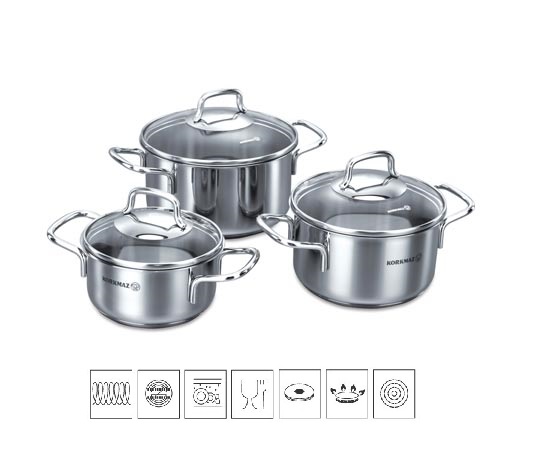 průměr 18 cm, objem 2,3 l, výška 9 cm vysoká kvalita, atraktivní design třívrstvé dno umožňující úsporné vaření poklička z tvrzeného skla, rukojeti...