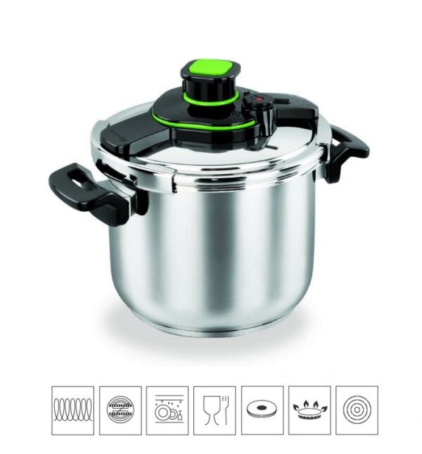 průměr 24 cm, objem 5 l, výška 12 cm vysoká kvalita, atraktivní design třívrstvé dno umožňující úsporné vaření poklička z tvrzeného skla, rukojeti...