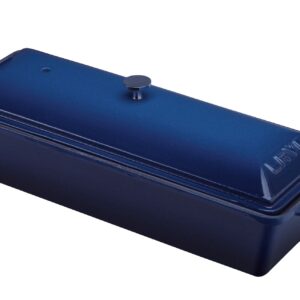 Teriny Lava metal jsou vyrobeny z masivní smaltované litiny s nepřilnavým povrchem. Jsou vhodné pro použití v troubě, připravit v nich můžete buchty nebo pomalu péct maso, skvělé jsou na přípravu domácí paštiky nebo krásně voňavého chleba. Jednoduše multifunkční pomocník. Díky praktickému tvaru a velikosti můžete terinu použít i pro přípravu sladkých dezertů. Ucha po stranách formy usnadňují manipulaci a servírování. Modrá s barevně sladěnou poklicí, která je opatřena nerezovým úchytem, má vnitřní rozměry 11×29 cm. Celková délka s úchyty je 33 cm, výška s poklicí 10,8 cm. Mytí v myčce nedoporučujeme, po použití umyjte horkou mýdlovou vodou a otřete dosucha.