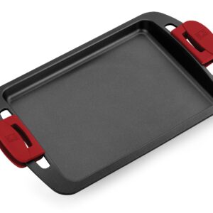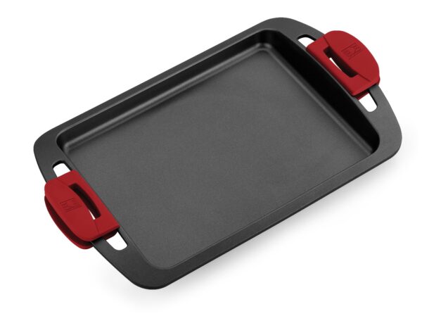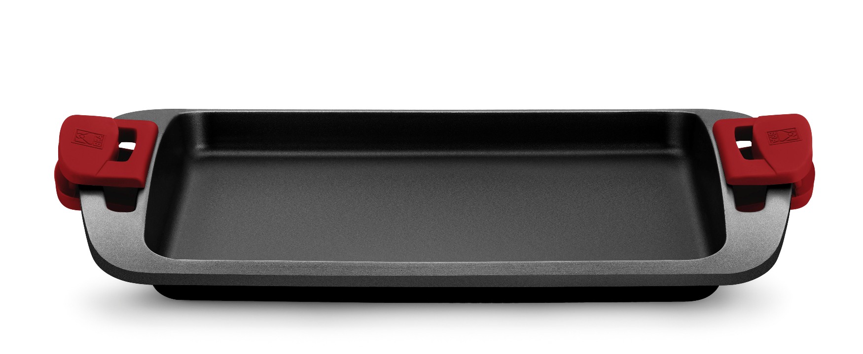 Pekáč řady Premiere je ideální pro každodenní použití v kuchyni. Kombinuje kvalitu s moderním designem. Jedná se o praktický pekáč vyrobený z litého hliníku s nepřilnavým povrchem Teflon Classic bez PFOA. Ergonomické rukojeti s odnímatelnými červenými silikony pro příjemné a bezpečné uchopení. Vynikající rozložení teploty pro dokonalou přípravu jídel. Snadno se čistí, je vhodný i do myčky na nádobí. Rozměry pekáče – 32,8 x 24,1 cm, výška 3,3 cm. Vhodný do trouby (bez úchytů).